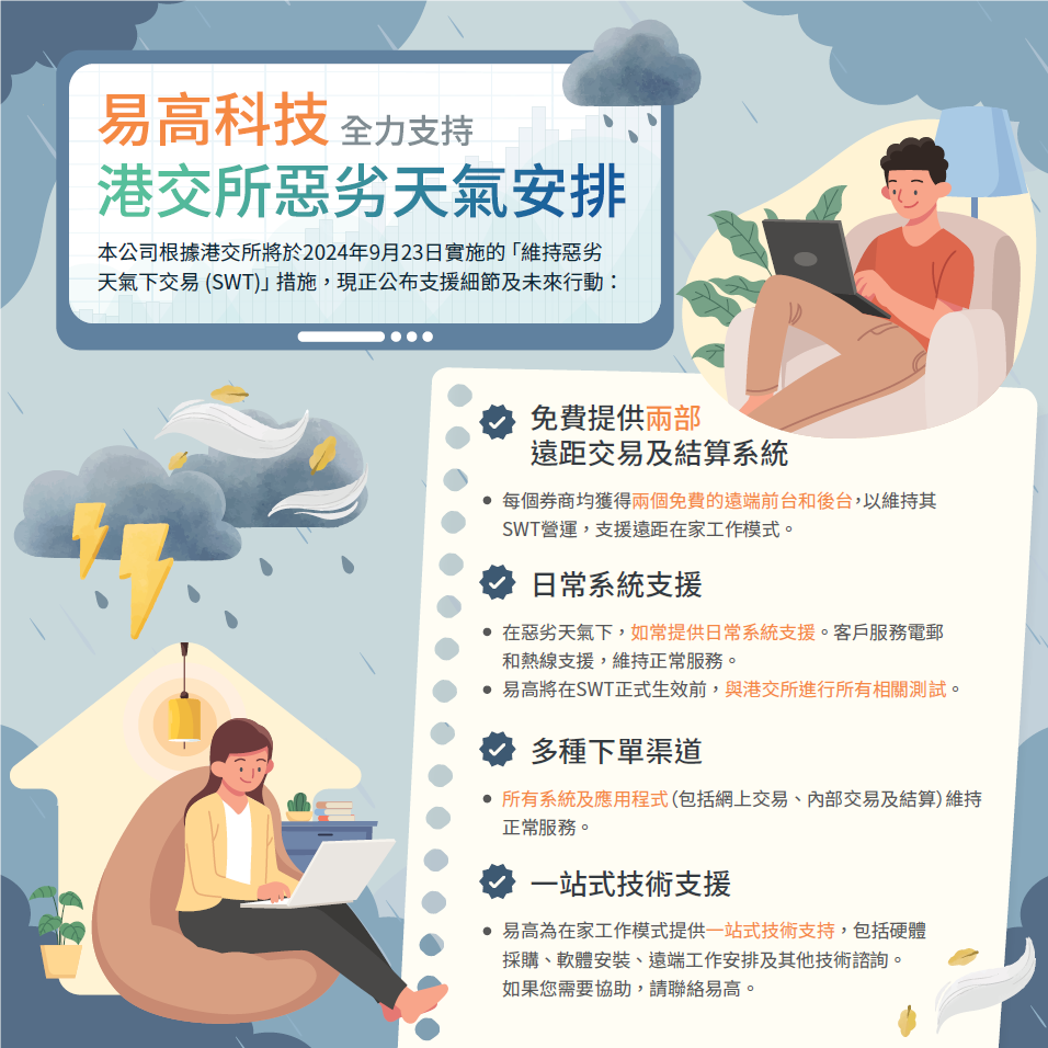 Regarding to HKEX Implementation of Server Weather Trading (“SWT”) scheduled at 23-Sep-2024, 2Go would like to update our support level